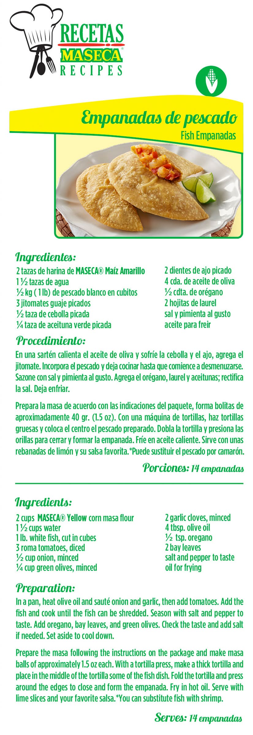 Directions for use: 19 Tortillas: Maseca: 2 cups; Water: 1-1/2 cups. Instant Corn Masa: To prepare delicious tortillas, just add water. Instructions for the Masa: Combine 2 cups of Maseca Yello corn masa flour with 1-1/2 cups of water. Mix thoroughly for 2 minutes until you form a soft dough. If dough feels dry, add teaspoons of water (one by one). Instructions for Tortillas: Divide dough into 19 equal balls of approximately 1 ounce each. Cover with a damp cloth a keep dough soft and moist. Line a tortilla press with 2 sheets of thick plastic wrap. Place each ball between the two sheets of plastic and press until each tortilla measures 5 in diameter. Heat skiller or griddle on medium-high heat. Carefully peel off tortilla from plastic wrap. Cook each tortilla for 30 seconds on side, turning the tortilla 3 times. Cover tortillas with a cloth napkin to keep them soft and warm. To make tostadas, let tortillas cool down before frying in oil. For Reheating Tortillas: Reheat tortillas on a skillet, griddle or microwave. Skillet or Griddle: Heat tortillas over medium-high heat for 15 seconds on each side. Repeat as desired. Microwave: Wrap 4 to 6 tortillas in a damp paper towel and microwave from 30 to 45 seconds or until heated through. Wrap tortillas in a cloth napkin or store in a tortilla warmer until ready to serve. How to Store you Tortillas: Once a tortillas are cool, place them in a zip close plastic bag and refrigerate. Tortillas can be refrigerated up to a week. Storage recommendation: How to Store you Tortillas: Once a tortillas are cool, place them in a zip close plastic bag and refrigerate. Tortillas can be refrigerated up to a week.