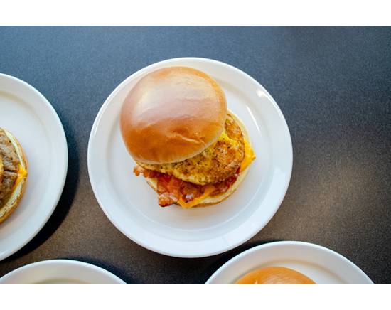 Bacon, fresh cracked egg, American cheese, salt & pepper on a brioche bun. SERVED CHILLED - REHEAT RECOMMENDED