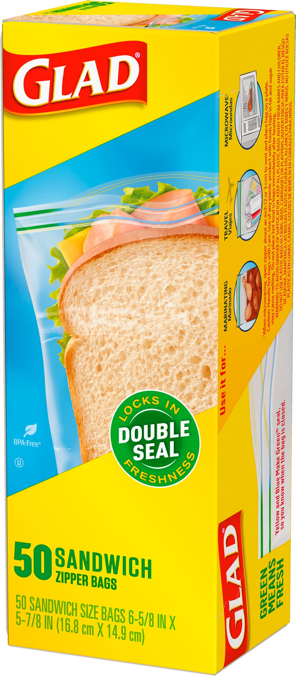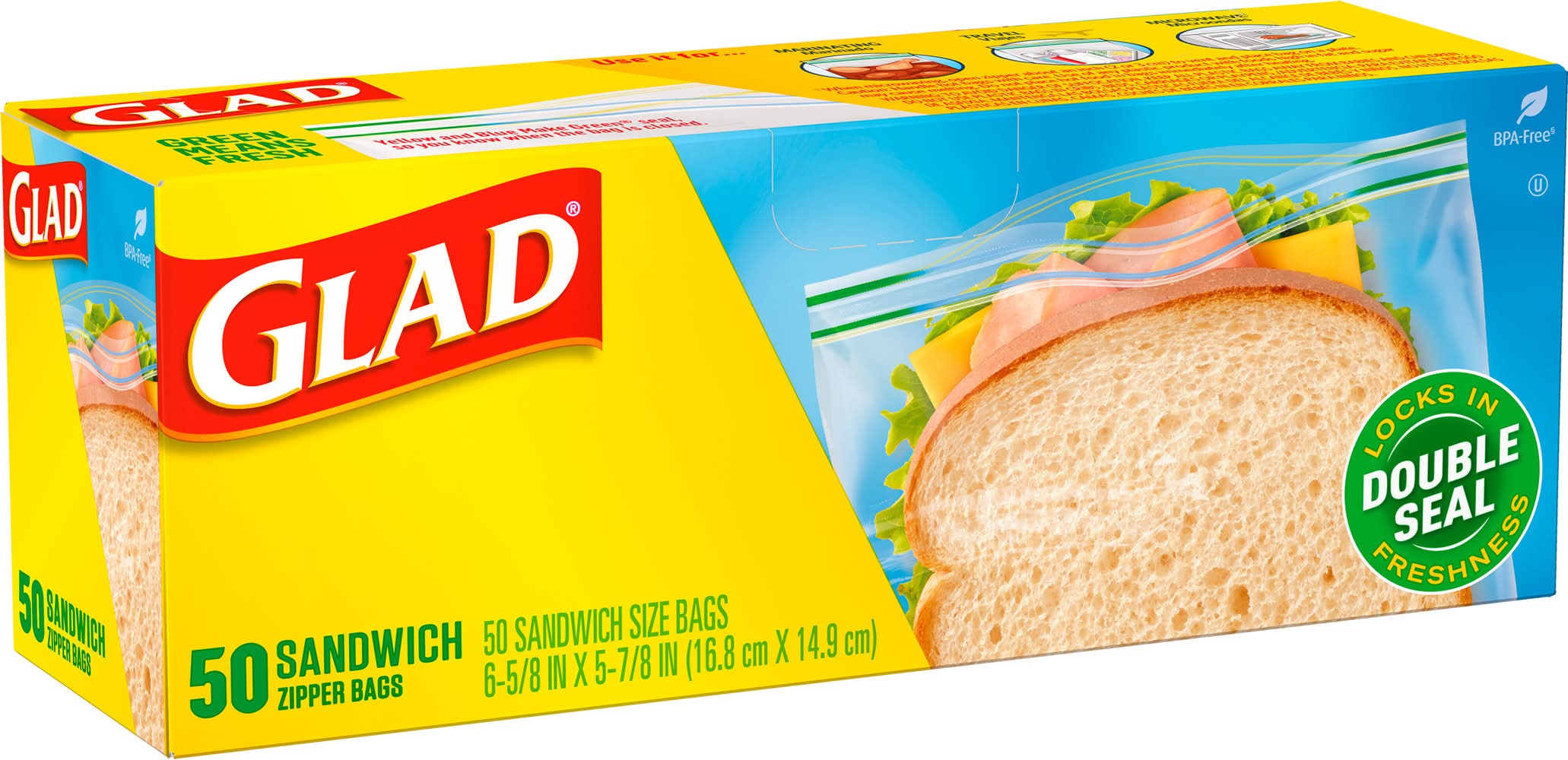 Glad Food Storage Zipper Sandwich 50ct • Glad Products, Oakland, CA, 94612 • Packaging: Reusable