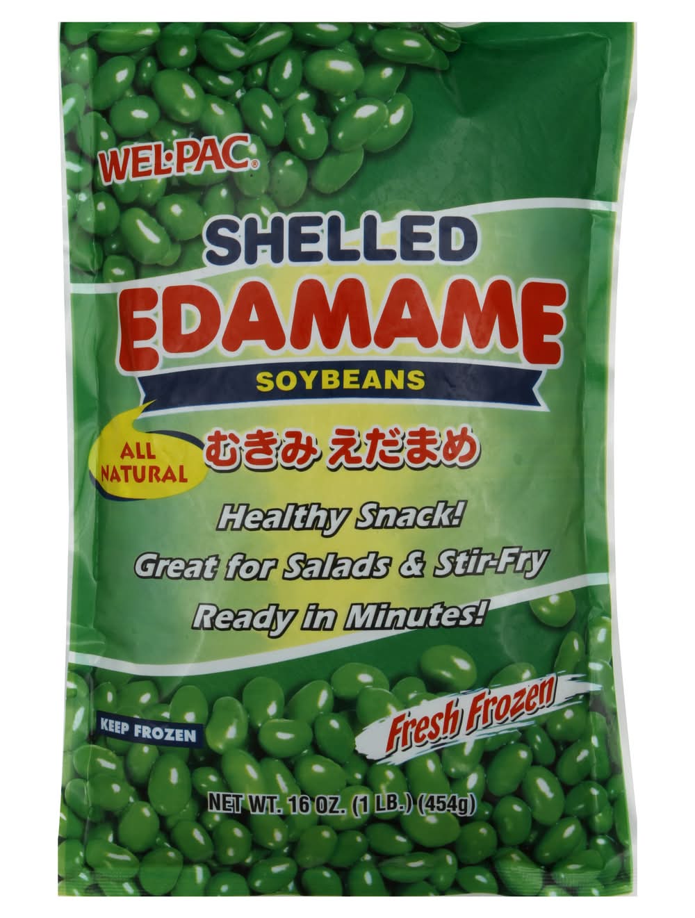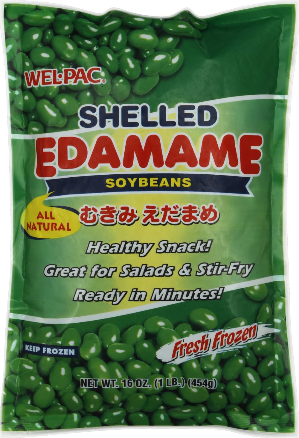 Keep frozen. bring 2 quarts water to a boil in a large pot. add desired amount of frozen wel-pac shelled edamame soybeans. return to a boil. cook 5 minutes. drain. rinse with cold water to cool; drain well. enjoy as a snack or add to salads, soups and stir-fry combinations, as desired. if serving wel-pac shelled edamame hot as hot, side dish, do not rinse with cold water after cooking.