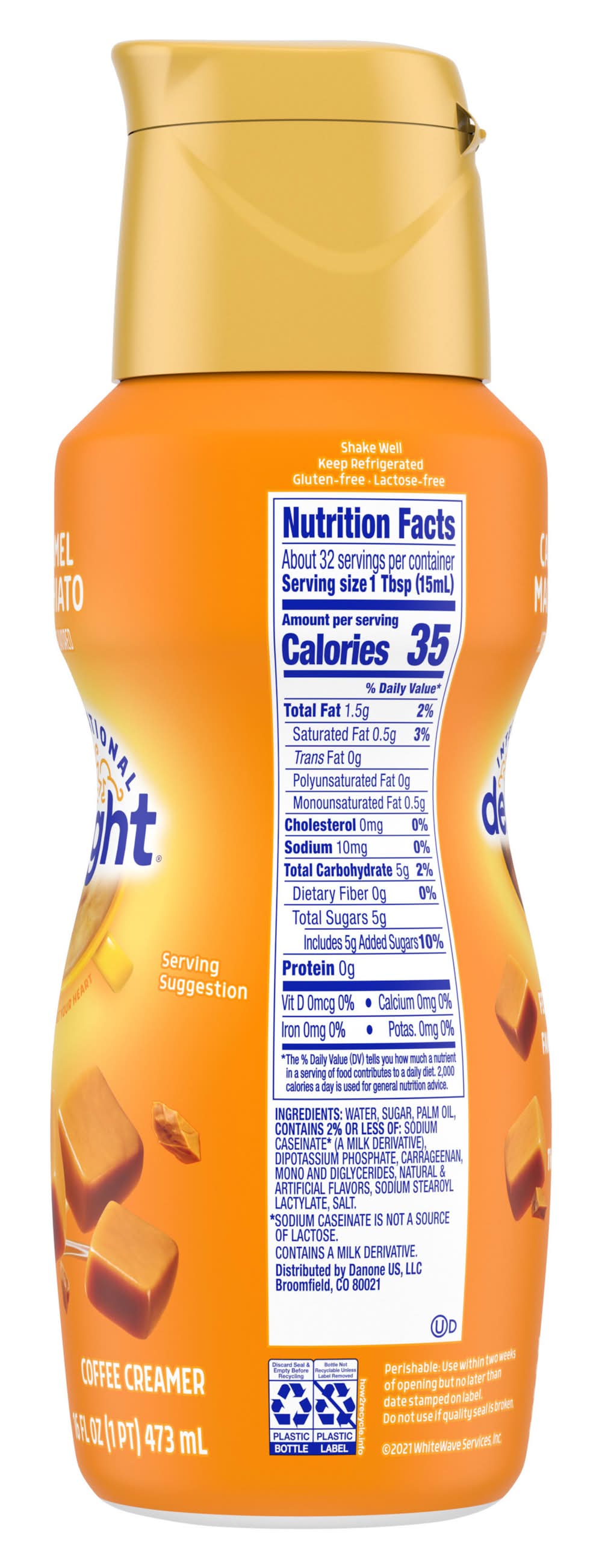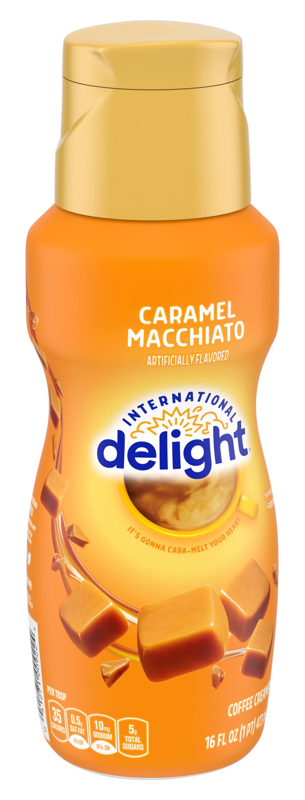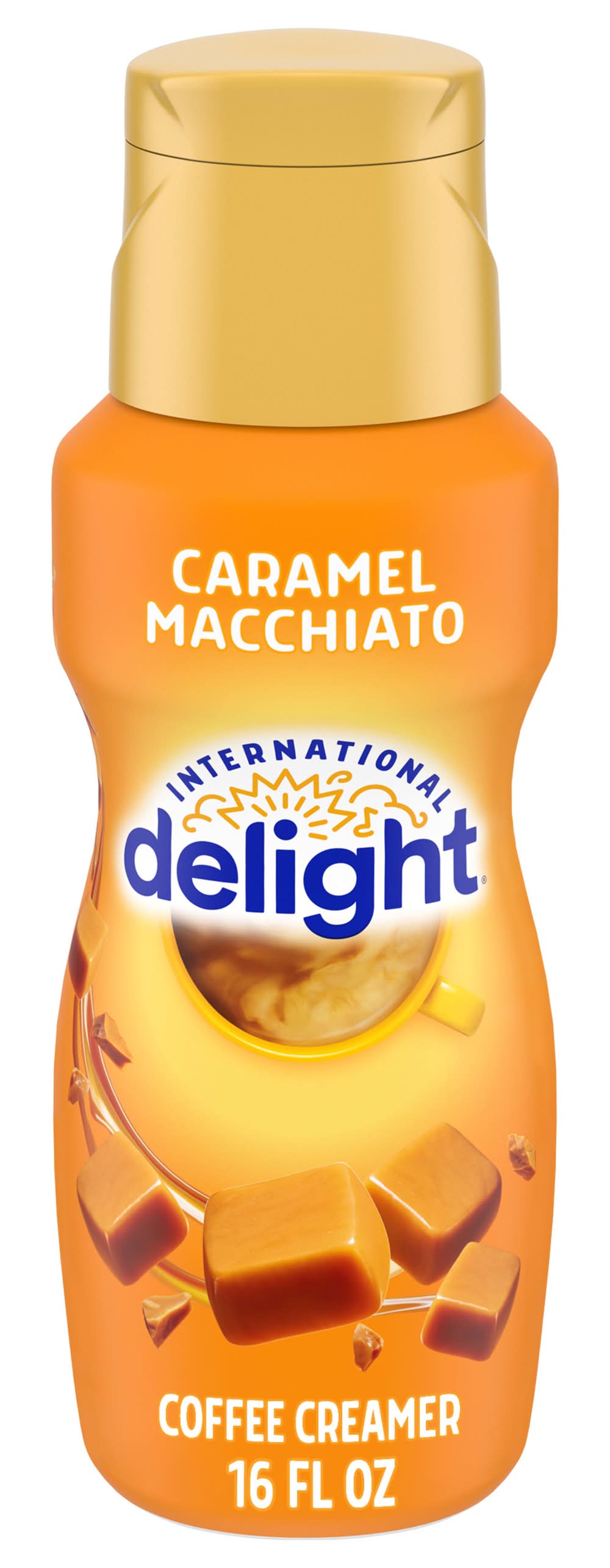 International Delight Caramel Macchiato Coffee Creamer is the world of flavor your coffee's been waiting for. Caramel macchiato flavor so rich, you'll be swept off your feet. Creaminess so delightful, you'll wonder why black coffee ever existed. Add some of our Caramel Macchiato flavored creamer to dial up the joy in everyday moments. Check out all of the International Delight liquid creamer flavors to bring some excitement to your coffee break. Plus, International Delight Creamers are lactose free and gluten free, so they're easy to share. Fill your room with some International Delight Liquid Coffee Creamer or mess up your whole dang day.