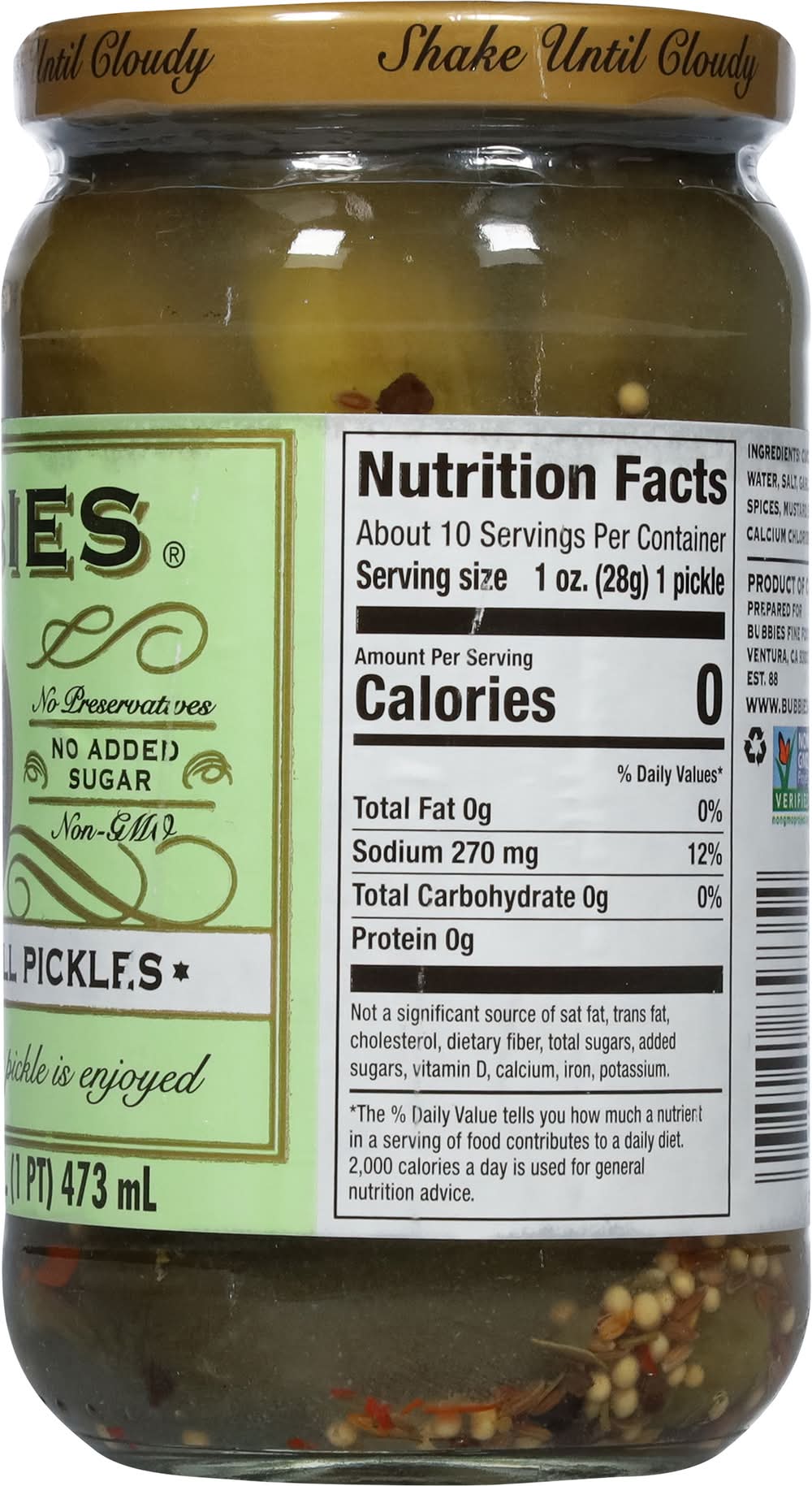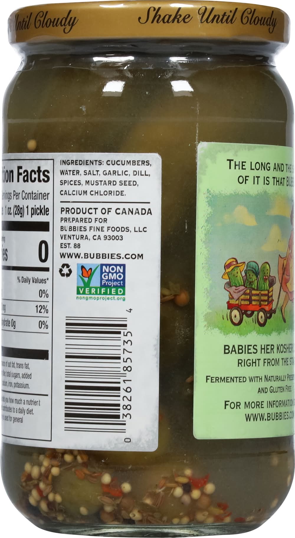 Ingredients: Cucumbers, Water, Salt, Garlic, Dill, Spices, Mustard Seed, Calcium Chloride Contains: Mustard