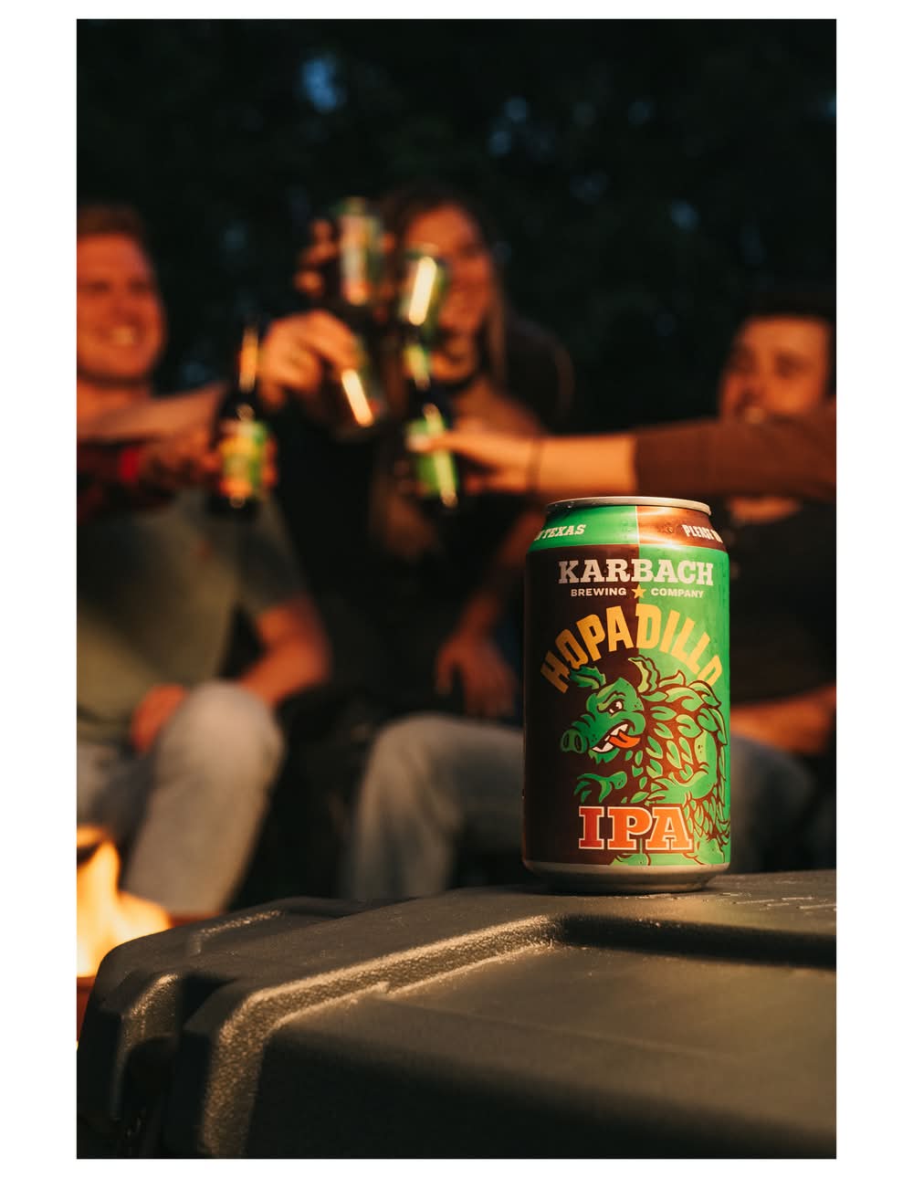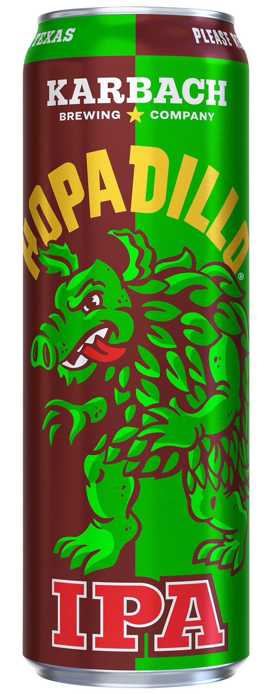 He lurks in the shadows, waiting in bold anticipation. He's surprisingly bitter. Bitter about something. Legend has it that he feasts on those with fresh hops coursing through their veins. This dry-hopped, Texas IPA has a flavor as defiant as the Hopadillo himself. It's packed with the bracing bitterness of hops from around the world that this creature craves. He's comin' to get ya. You've been warned. • Brand: Karbach brewing co. • Alcohol by volume: 5% • Packaging: Reusable