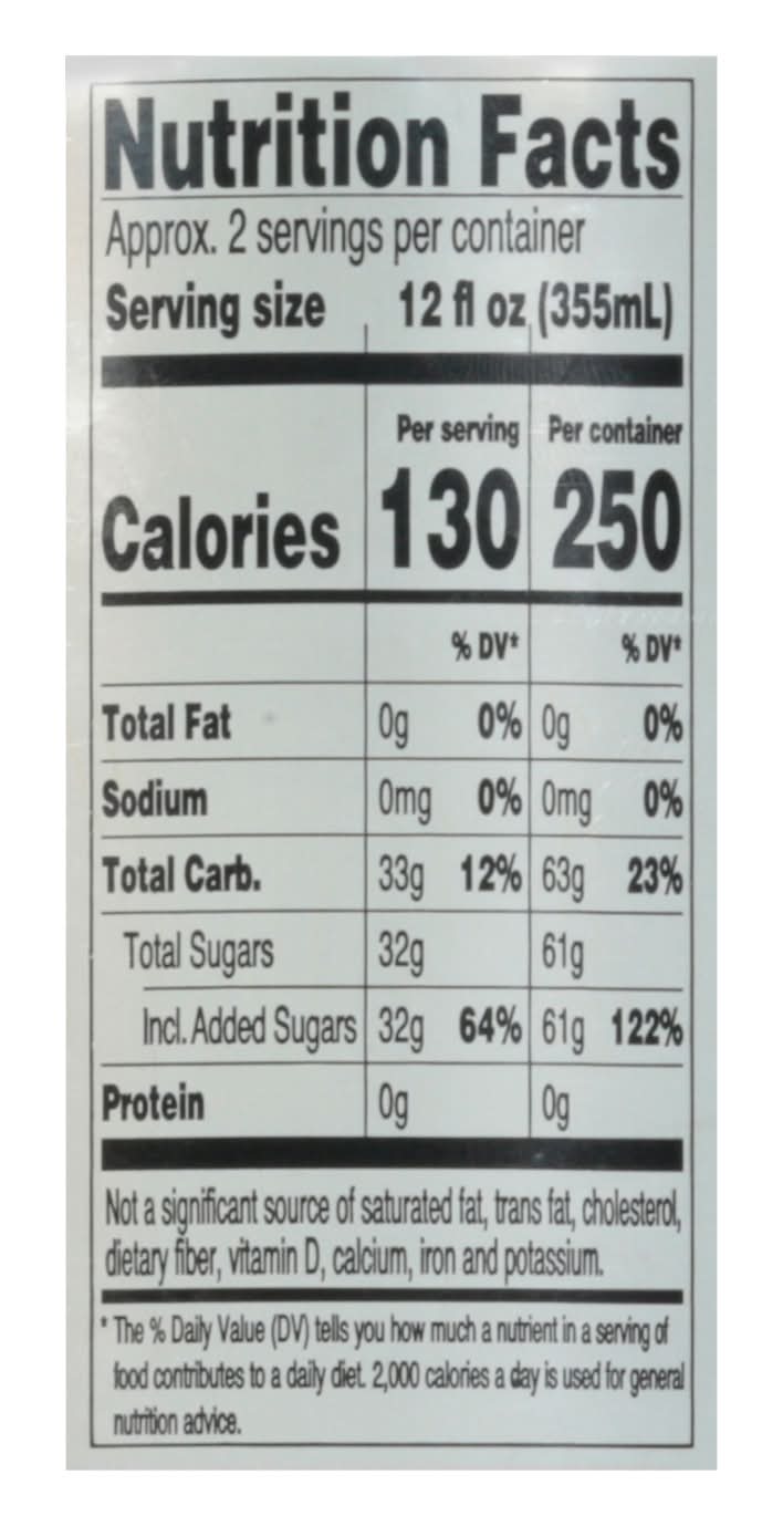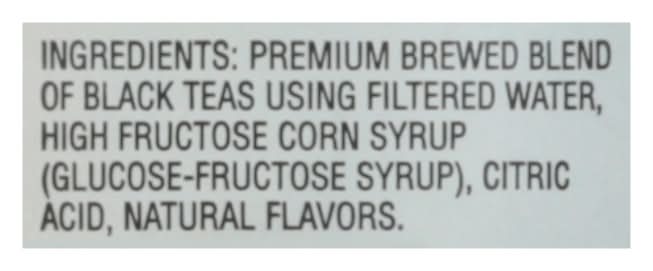 Ingredients: Premium Brewed Blend of Black Teas Using Filtered Water, High Fructose Corn Syrup (Glucose-Fructose Syrup), Citric Acid, Natural Flavors