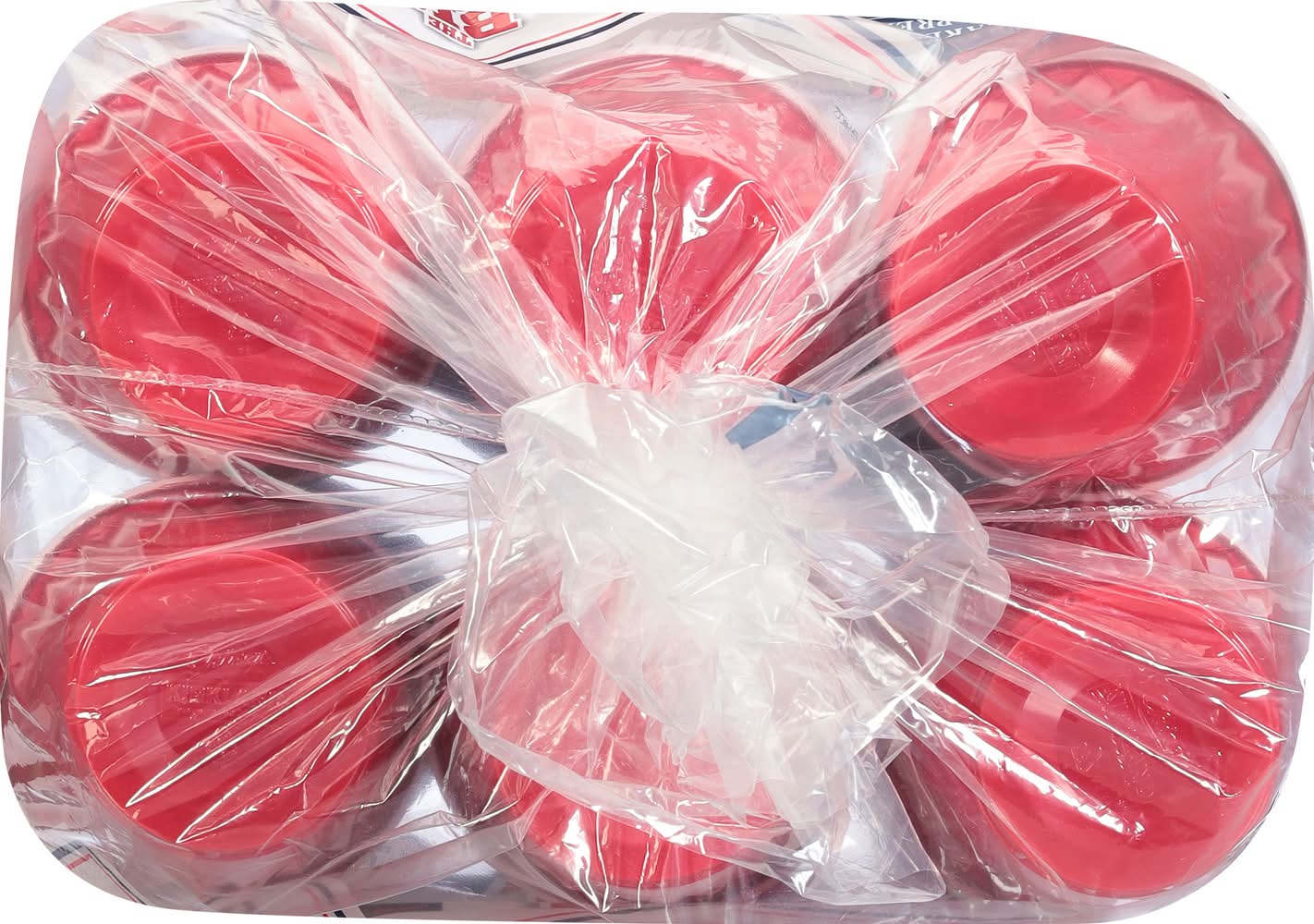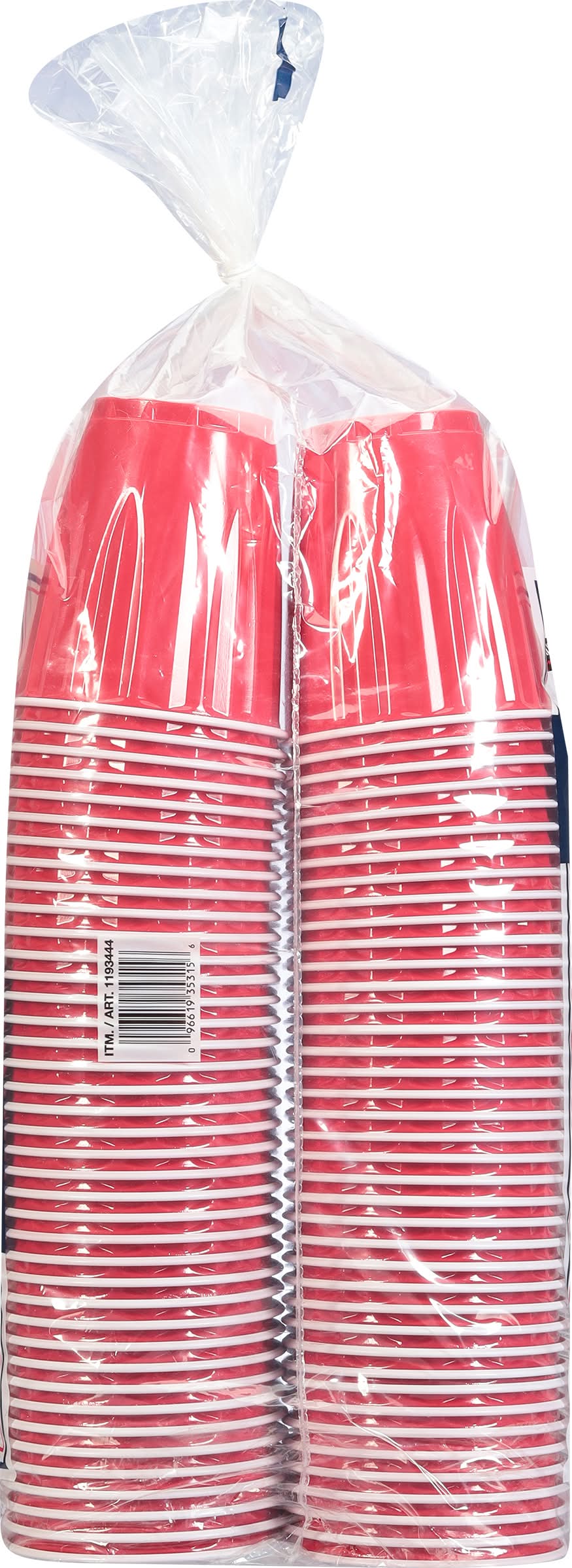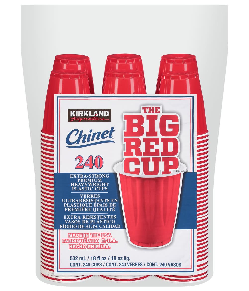 Extra-strong premium heavyweight plastic cups. The big red cup. • Color: Red • Packaging: Reusable