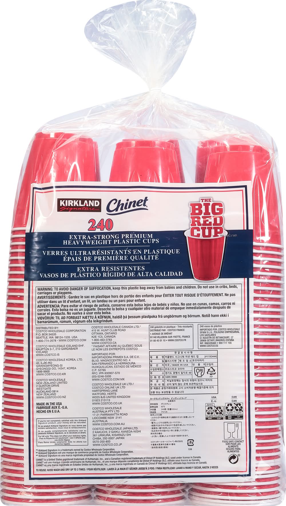 Kirkland Signature Chinet Heavyweight Plastic Cups 18 fl oz, Red (240 ct)