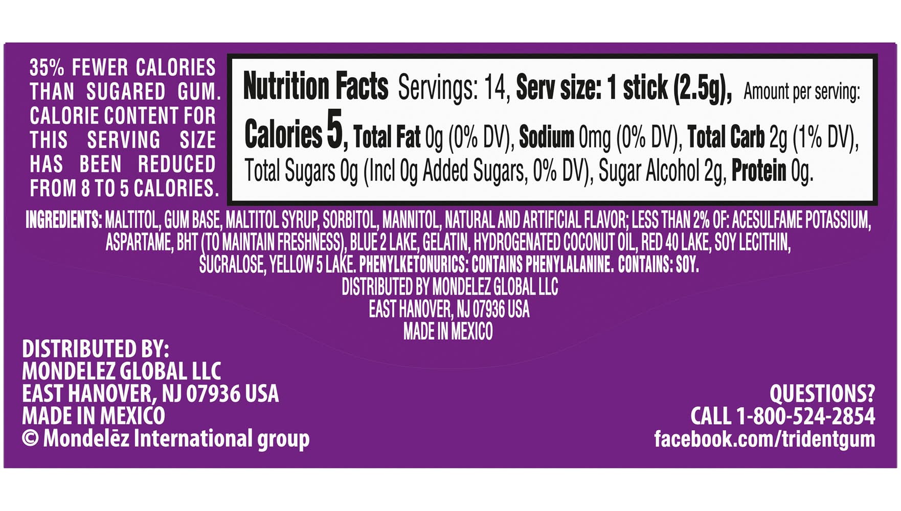 Trident Layers Grape & Lemonade Sugar Free Gum • Pack size: 14 • Number of servings: 14