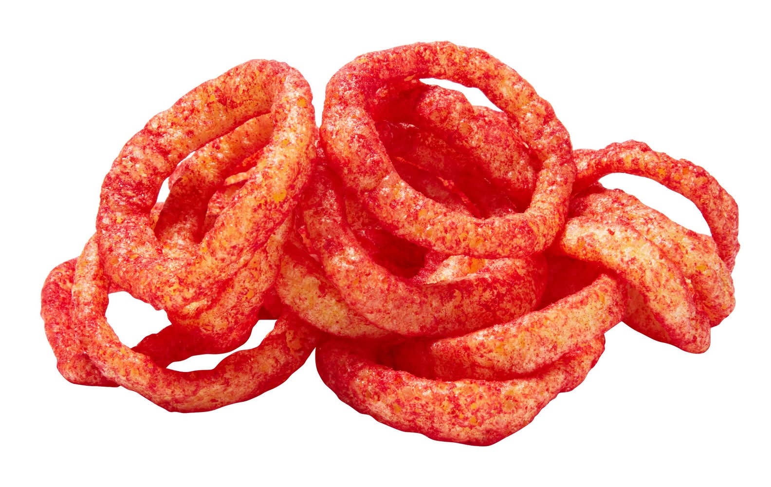 The Flavored Rings are a deliciously different snack that's fun to eat, with a crisp texture and zesty onion flavor. Next time you're in the mood for a tasty treat that's out of the ordinary. • Flavor: Flamin' hot-onion • Frito-lay, inc., Plano,TX,75024-4099,Phone;800-352-4477