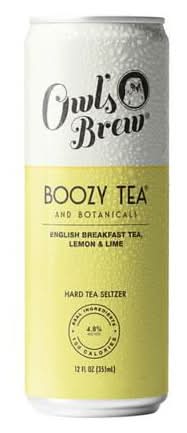 Owl's Brew Boozy Tea combines fresh-brewed organic English Breakfast tea with lemon and lime juices, lightly sweetened with a dash of cane sugar. Each 12oz can contains an alcohol content of 4.8% by volume. The ingredients used are 100% real, and the product is certified gluten-free and vegan. Alcohol by volume: 4%