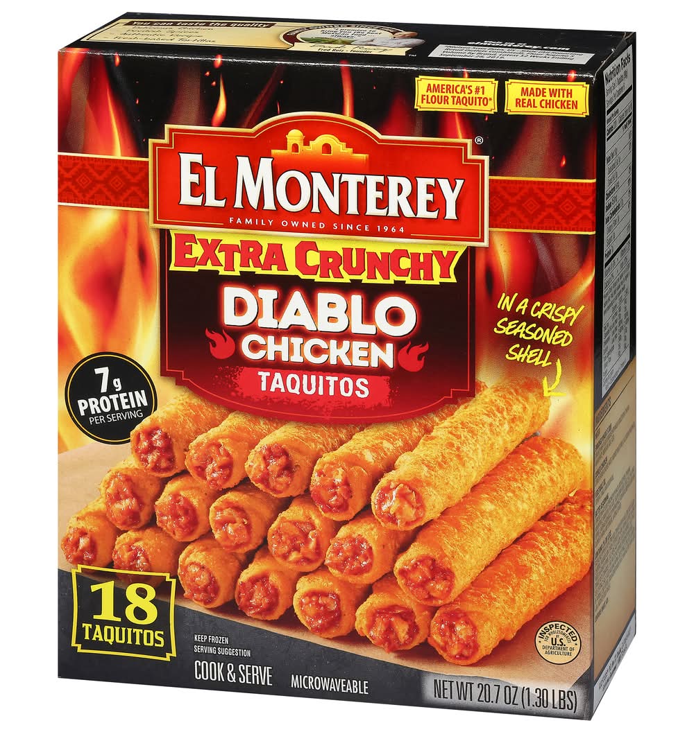 El Monterey Extra Crunchy Diablo Chicken Taquitos (20.7 oz, 18 ct)