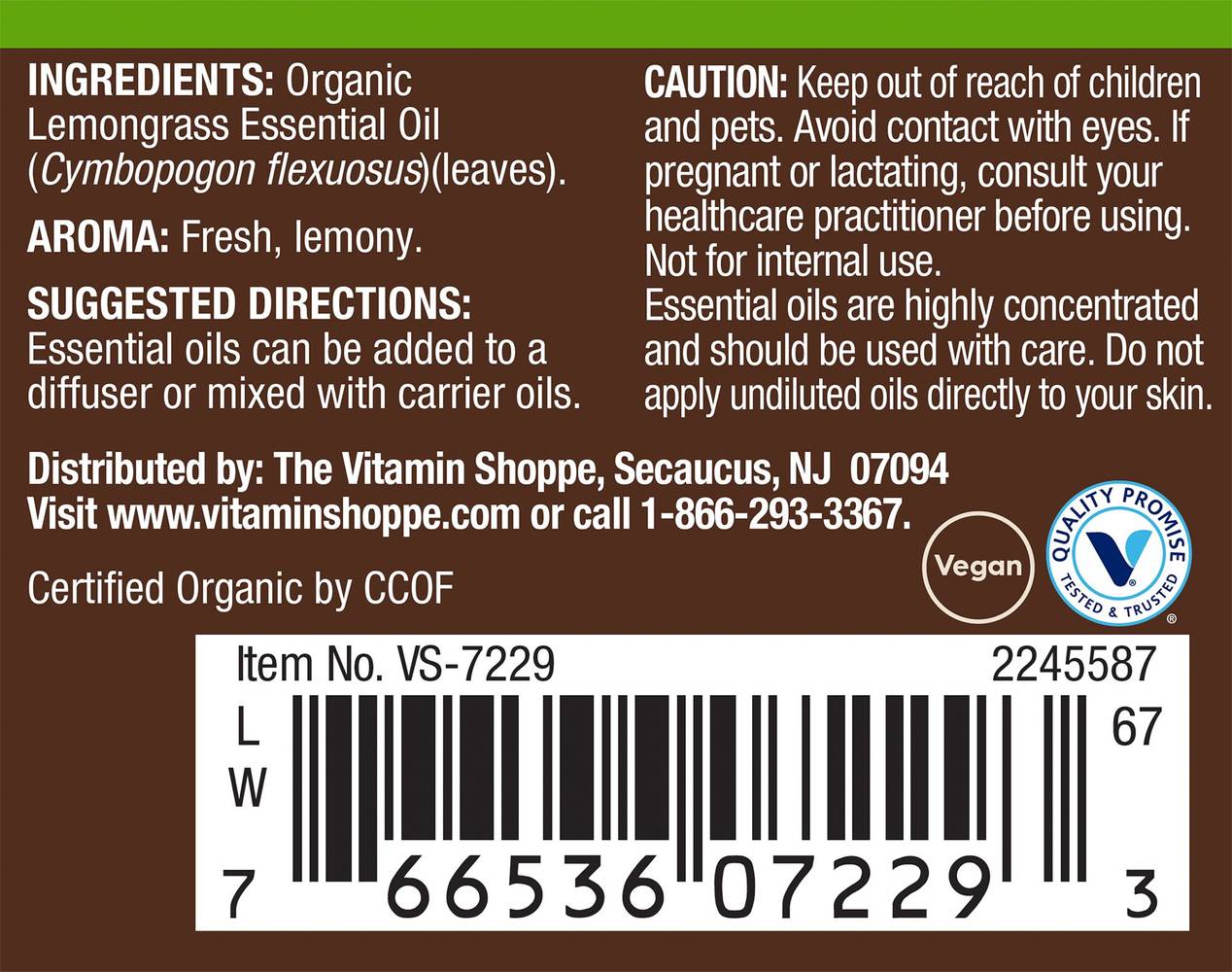 Organic Lemongrass 100% Pure Essential Oil Aromatherapy (0.5 Fl. Oz.)