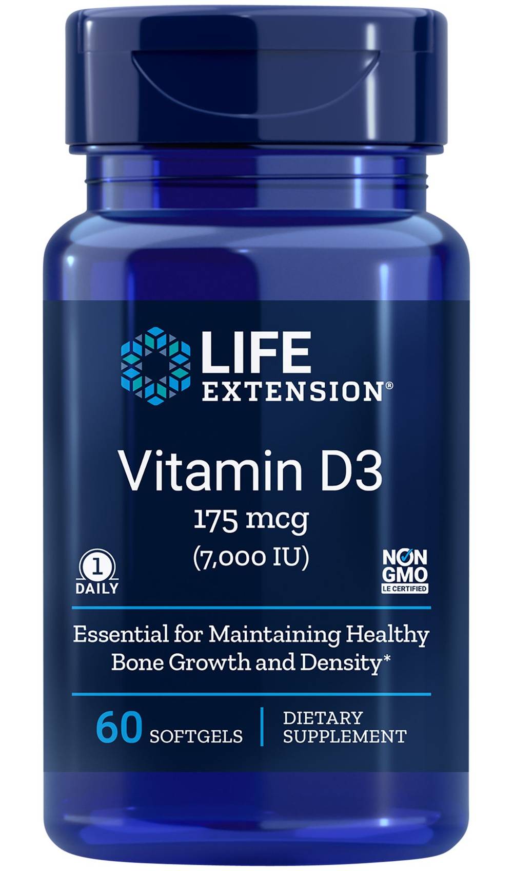 Helps maintain healthy bone growth and density Supports healthy immune function Non-GMO and gluten-free Vitamin D is essential for strong bones and healthy immune function, but getting enough of it from sunlight and diet can be a challenge. Life Extension created this high-potency supplement to help fill the gaps, delivering 175mcg (7,000 IU) of vitamin D3 in each easy-to-swallow softgel.