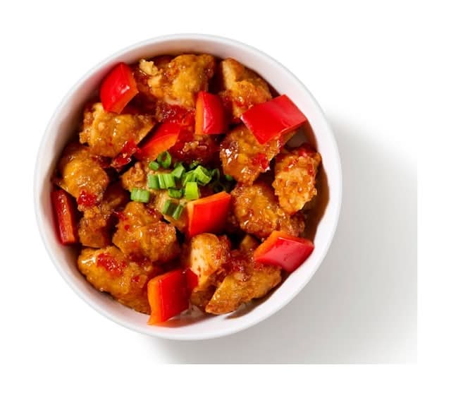 13.5oz. Chicken karaage and red bell pepper served over rice and topped with sweet chili sauce and green onions Served chilled, ready to heat and enjoy!