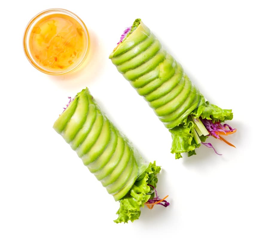 2 pieces Avocado, lettuce, carrot, cucumber, and red cabbage, rolled in tapioca paper