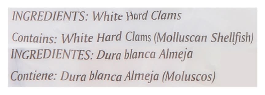 Ingredients: White Hard Clams Contains: Crustacean Shellfish
