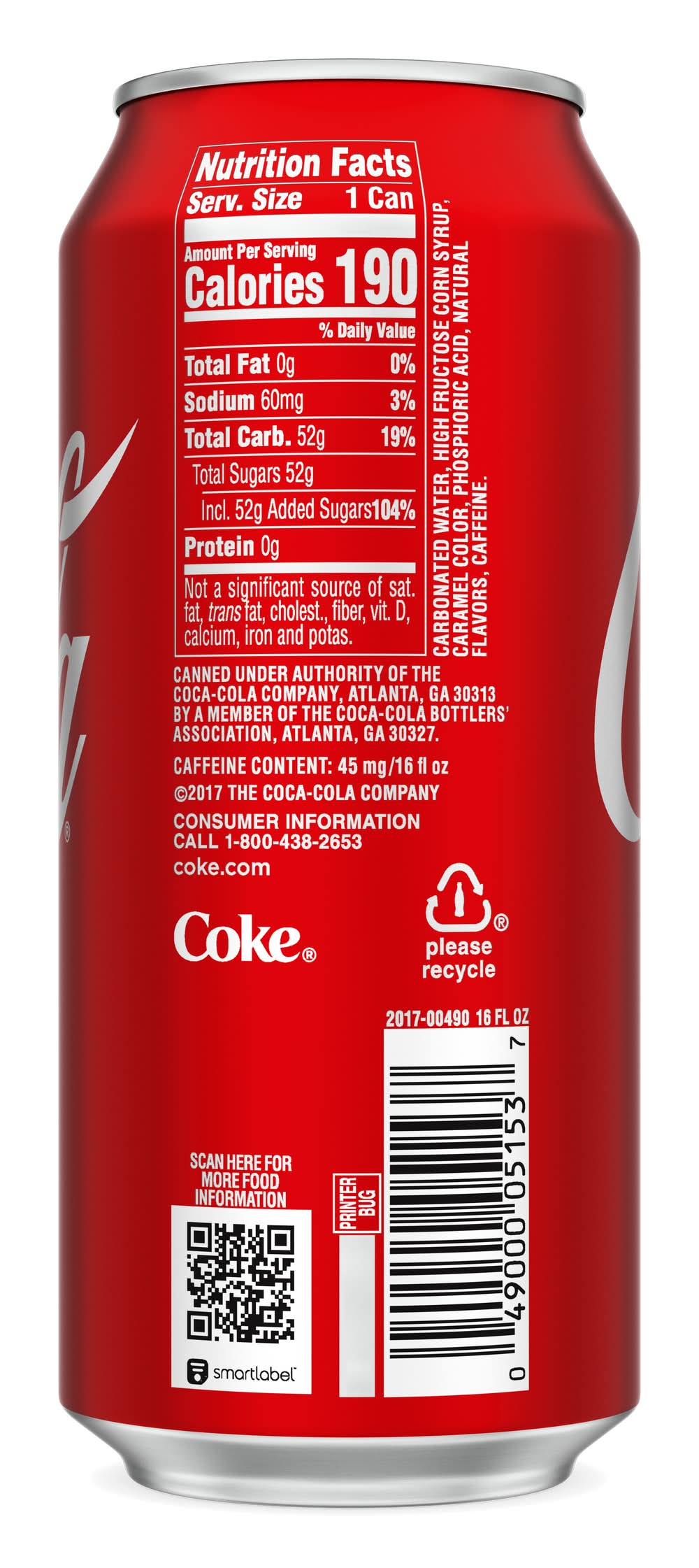 Ingredients: Carbonated Water, High Fructose Corn Syrup, Caramel Color, Phosphoric Acid, Natural Flavors, Caffeine.