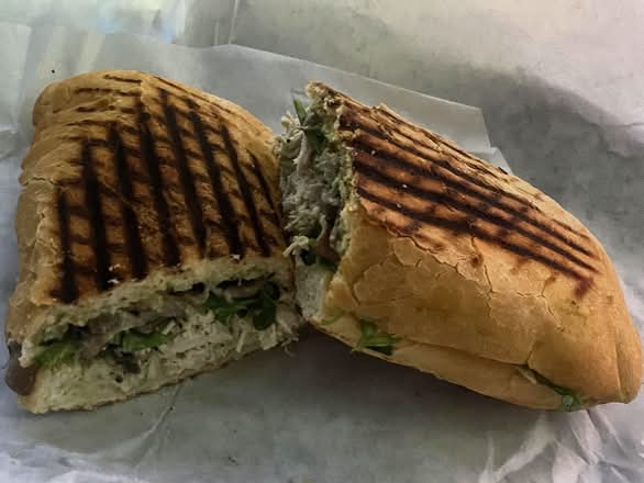 Chopped chicken breast (antibiotic free chicken), house made pesto garlic aioli sauce, roasted garlic mushroom, and freesh arugula.