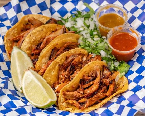 your choice of meat with cilantro and onion on the side. Comes with red and green salsa and lemon