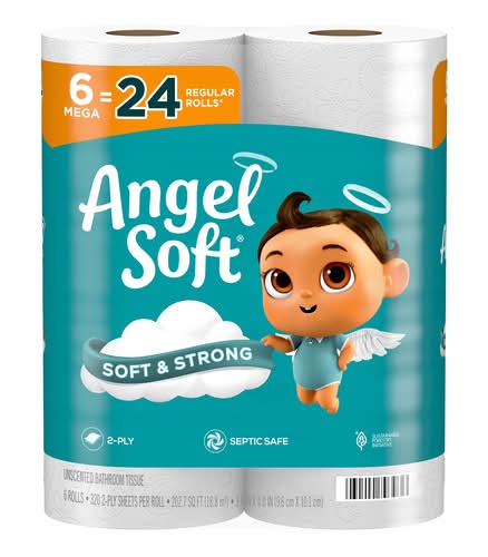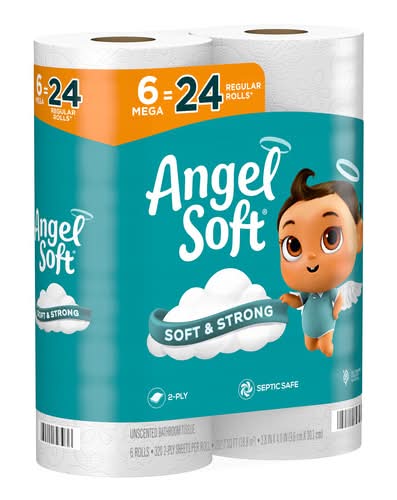Angel Soft Mega Roll Unscented Bathroom Tissue (6 x 24 ct)