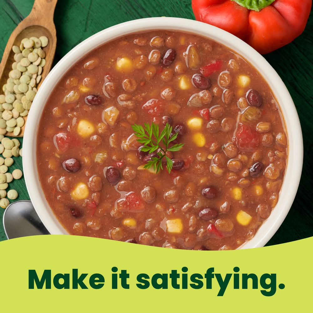 Ingredients: Water Green Lentils (Organic) Tomato Puree (Water, Tomato Paste (Organic)) (Organic) Onions (Organic) Diced Tomatoes (Tomatoes (Organic) Tomato Juice (Organic) Citric Acid) (Organic) Roasted Red Peppers (Organic) Celery (Organic) Corn (Organic) Black Beans (Organic) Cornstarch (Organic) Salt Garlic (Organic) Cane Sugar (Organic) Apple Cider Vinegar (Organic) Spices (Organic) Chili Pepper (Organic) Contains: Celery, Corn