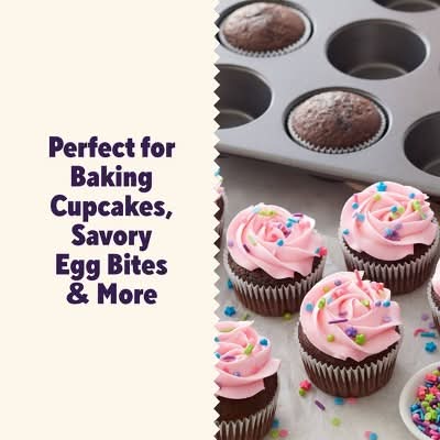 Whether you're making cupcakes for a child's birthday party or Sunday morning breakfast muffins, this 12-cavity non-stick pan will bake them just right. Heavyweight steel construction helps to prevent warping and will last through many years of baking. Non-stick coating keeps your cupcakes and muffins from sticking to the pan and makes clean-up quick and easy. Safe for use with metal tools.