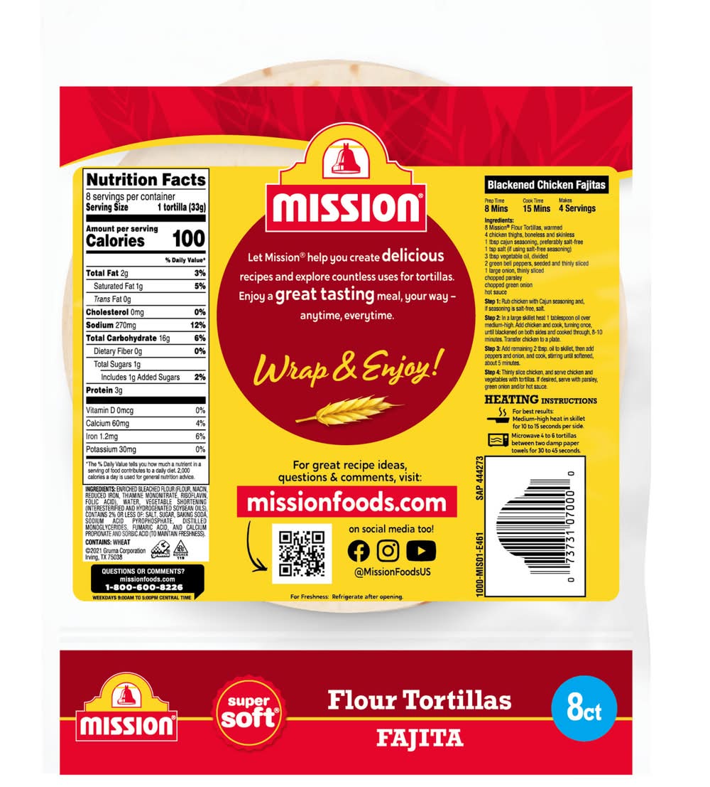 Heating: tortillas may be heated on a skillet or electric griddle, on the grill, or in the microwave. for best results, heat tortillas on an ungreased skillet over medium-high heat for 10 to 15 seconds. flip and heat for another 5 to 10 seconds. microwave: place 4 to 6 tortillas between two damp paper towels. microwave 30 to 45 seconds or until heated through. wrap in a cloth or a tortilla keeper until ready to serve. for freshness, refrigerate after opening.