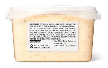 For your own snacking or for setting up a spread to host an event, this Rotisserie Chicken Salad from Good & Gather is a great option that can help you get a head-start on crafting delicious dishes. Made with white meat chicken, celery and peppery herbs and spices in a savory, creamy dressing, this chicken salad packs classic flavors and a saucy texture that works well as a dip, all in a convenient, reclosable 12-ounce container. Keep this rotisserie chicken salad on hand for enjoying between slices of bread or on a croissant as a flavorful sandwich, scoop some into a tortilla and roll up to eat as a wrap, or simply use it as a dip for some pita chips as an afternoon snack or appetizer. Every product that carries the Good & Gather name starts with quality ingredients that deliver great taste, making it easier for you and your family to eat well, every day. We promise you’ll love each bite, or your money back.