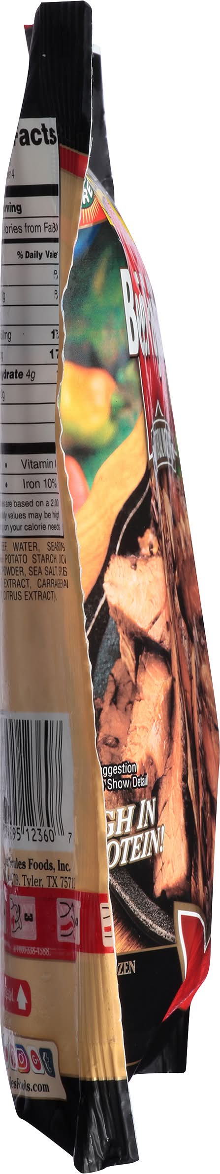 Fire-grilled sliced beef strips with authentic Fajita seasoning tenderized with bromelain and papain. Per Serving: 120 calories; 2.5 g total fat (3% DV); 18 g protein (19% DV). Gluten free. Fully cooked. No artificial ingredients. Also tastes great in tacos, nachos & salads. At John Soules Foods, we believe that home cooked meals are the heartbeat of home. That’s why we put the same love and care into our food that you do. We cut, season and cook our meats using only wholesome ingredients to save you time and give you homemade flavor with every bite. From our family to yours, enjoy! Great food, made simple. Satisfaction Guaranteed: John Soules Foods, Inc., PO Box 4579,Tyler,TX,75712