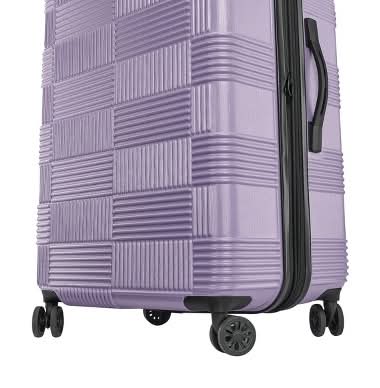 The lightweight yet durable 22" Spinner Upright from the CHECKERED Collection is the perfect stylish carry-on for your fun-filled weekend away. The roomy interior compartment offers space for everything you need, with plenty of interior pockets for easy access to all the important stuff. Weighing less than 7lbs and meeting most airlines requirements for carry-on bags, this CHECKERED Collection Spinner Upright makes perfect sense for the savvy traveler. Color: Soft lilac