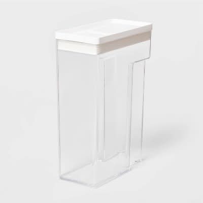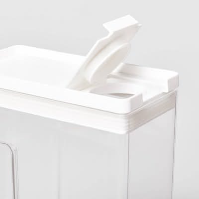 Perfect for cereal, oats, rice and other dry goods, this Clear Plastic Food Storage Container with Snap Lid from Brightroom will make a great addition to your pantry, shelf or kitchen counter. clear canister has a clean look and stackable design to save you space and make your everyday kitchen and pantry essentials easy to find. An indented back lets you easily lift and hold the container. This handy food storage container has white snap lid with pour spout to keep your food fresh and give you easy access to contents. Hand wash only. Color: White