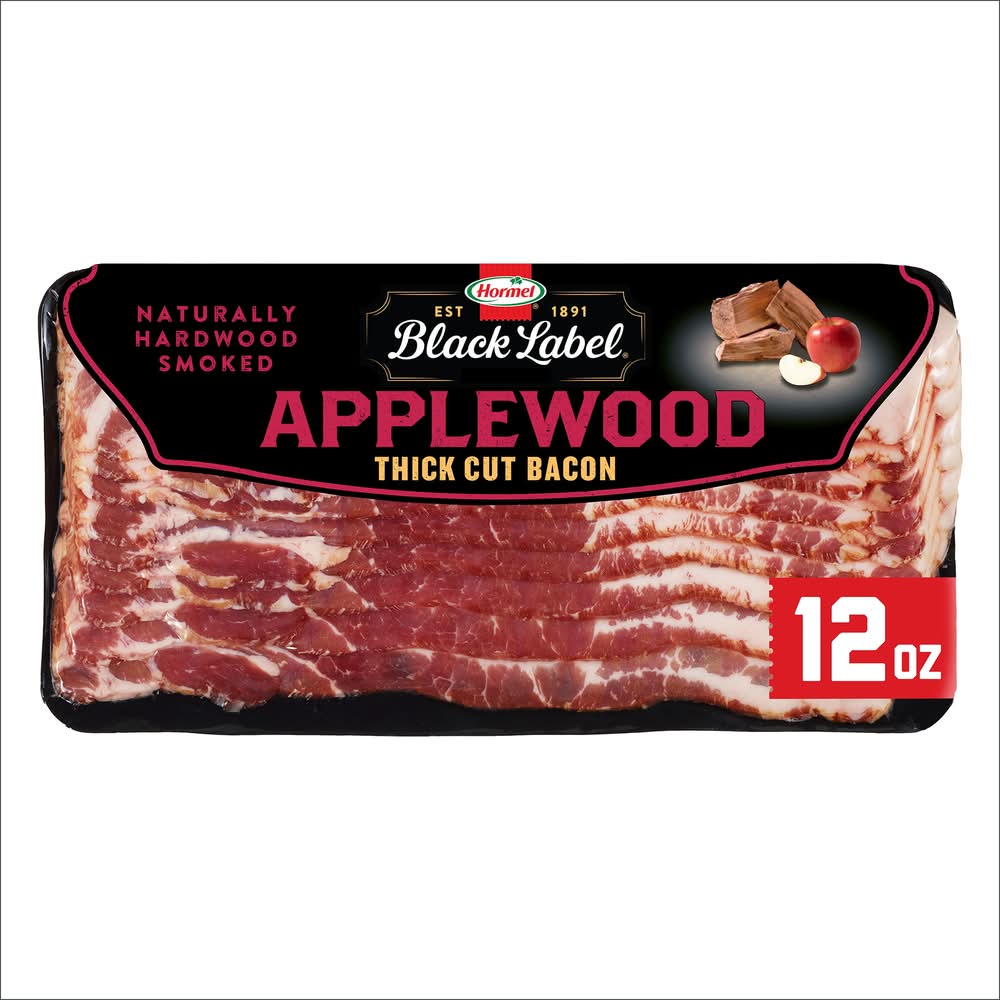 Don’t resist it. MAKE IT! HORMEL BLACK LABEL Premium Applewood Bacon is never the sidekick to any meal. Thick cut slices that don’t break apart are slowly smoked over premium applewood smoke. Mild and slightly sweet, it's a versatile bacon that delivers that little something extra with every bite. We use quality cuts of meat and add a proprietary brine for a complex, savory flavor. It’s easy to cook and easy to add to any recipe – from burgers to casseroles and even desserts! At 7 g of protein and 110 calories per serving, you can make bacon the star ingredient in all your meals. Contains one 12 oz. package of HORMEL BLACK LABEL Premium Applewood Bacon. HORMEL BLACK LABEL Bacon is serious bacon for serious bacon lovers — or anyone ready to become one! All trademarks, logos and images are owned by Hormel Foods Corporation, its subsidiaries and affiliates. Copyright Hormel Foods, LLC. Flavor: Applewood