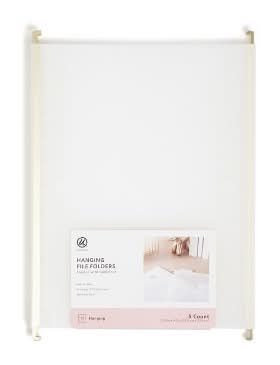 These 12.8" x 9.3" hanging file folders bring a blend of simplicity and style to your organization. With 1/5-cut tabs offering five positions for easy labeling, these folders upgrade your organization routine and make document identification easy and effortless. The set includes tab inserts for convenient customization. Designed to fit standard letter-size paper, each folder holds up to 150 sheets, making them essential teacher must haves and classroom staples. Redefine your daily learning, planning, and creative sessions with functional and cute office supplies from U Brands®. • Color: Gold • Size: 8.5x 11 in