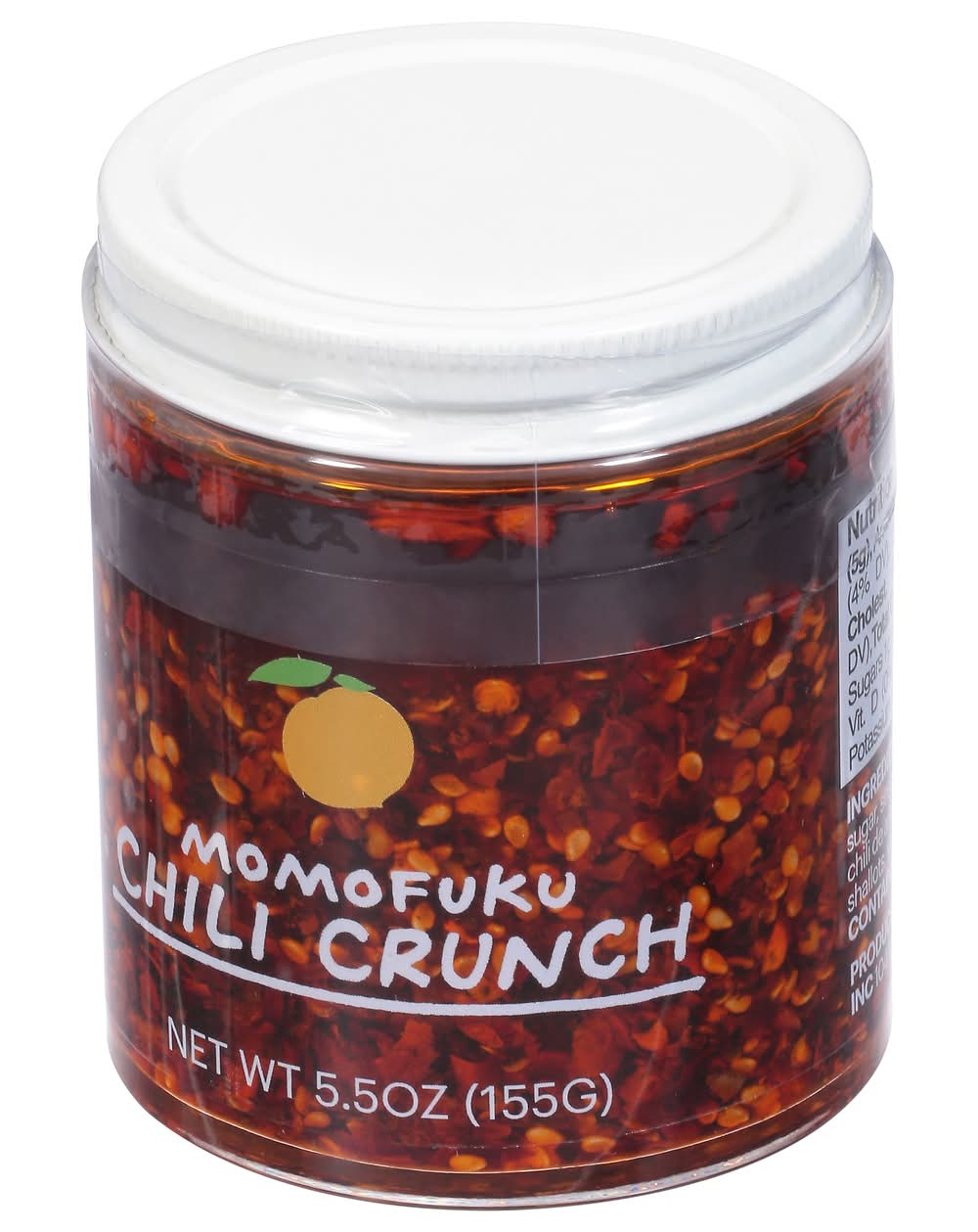 Momofuku Chili Crunch is a spicy crunchy chili oil. It features an umami base, plus a lot of the flavors and textures we love crispy shallots, sesame seeds, dried garlic, and coconut sugar for a hint of sweetness. Chili Crunch is the perfect balance of spicy and crunchy. Number of servings: 31
