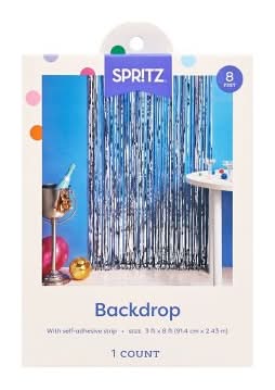 Add some sparkle to your party with the Fringe Backdrop Silver from Spritz™. This fun fringe backdrop in silver is perfect for creating a festive atmosphere at any event. Whether you're hosting a birthday party, baby shower, or any other celebration, this backdrop will make your photos pop. It's made from durable foil material, ensuring it holds up throughout the festivities. Ideal for both party decorations and gifting supplies, this backdrop is a simple way to add a touch of glamour to your special occasion. Color: Silver