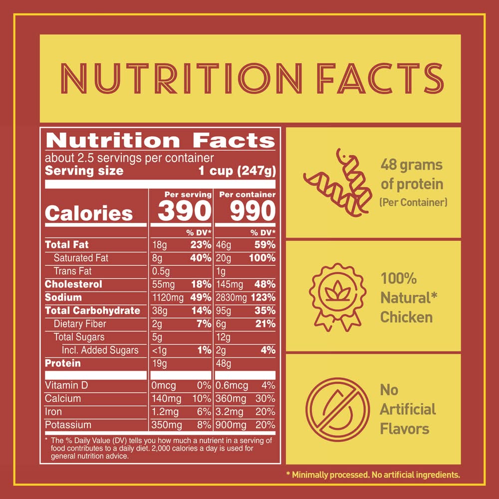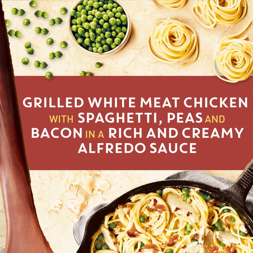 Featuring spaghetti pasta with grilled white meat chicken, peas and bacon in a rich and creamy Alfredo sauce for frozen dinners with Italian-inspired flavor. Made with wholesome ingredients, this frozen meal ensures delicious and satisfying frozen entrees every time. Deliciously simple cuisine at your fingertips; these frozen pasta meals provide Italian-inspired flavor in quick ready made meals that can be prepared in the comfort of your home. Simply cook this frozen food on the stove top according to the package instructions for easily prepared meals in minutes. Conagra Brands, PO Box 353, Chicago, IL,60654