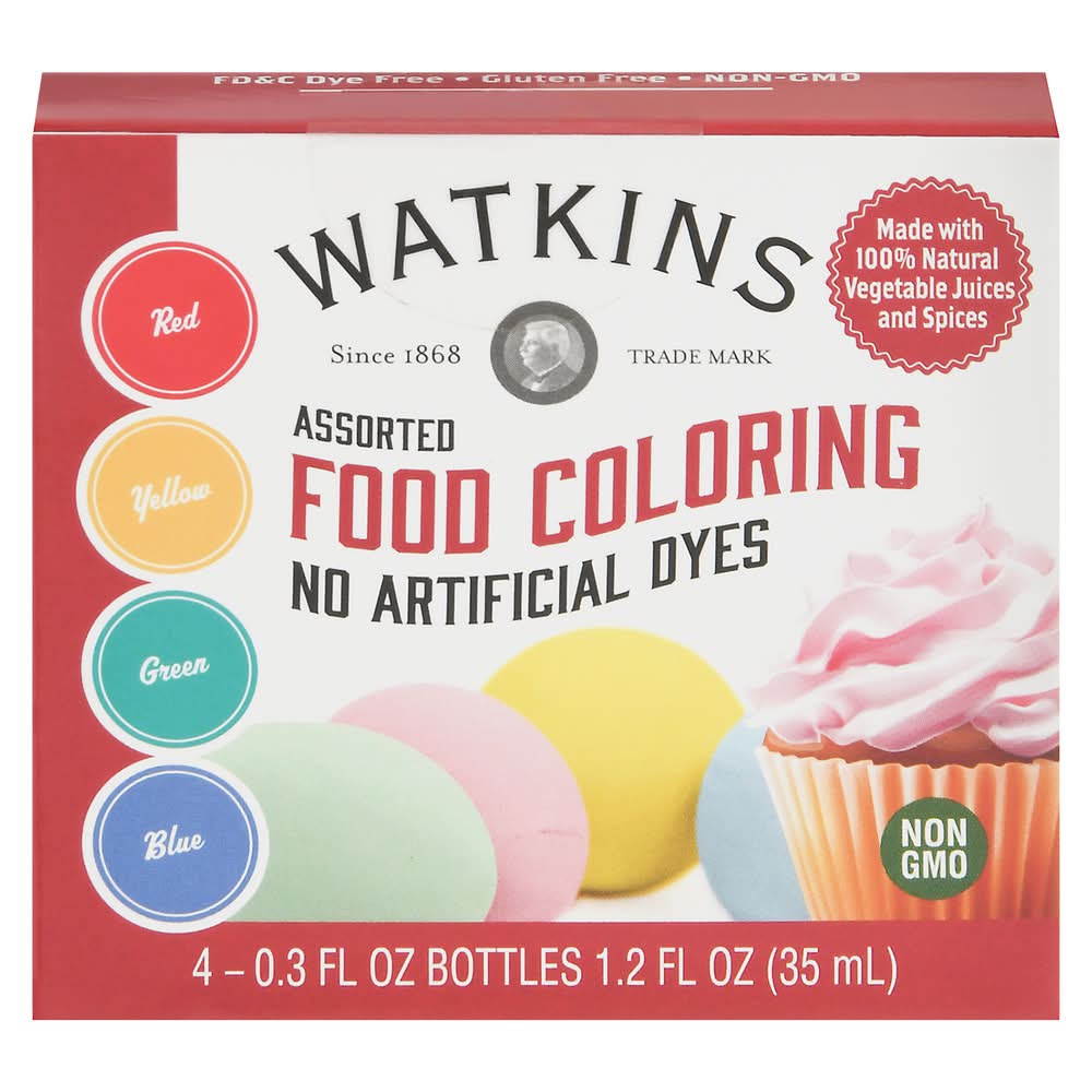 Watkins Assorted Food Coloring No Artificial Dyes, Red-Yellow-Green-Blue (0.3 fl oz, 4 ct)