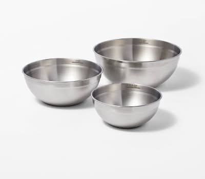 Whether you're whipping up a batch of cookies or prepping multiple ingredients for your next dinner, these Stainless Steel Non-Slip Mixing Bowls from Figmint make it a breeze to get the job done. This set of mixing bowls comes with three sizes — one five quart, one three quart and one 1.5 quart — providing you with everything you need to tackle a variety of recipes.