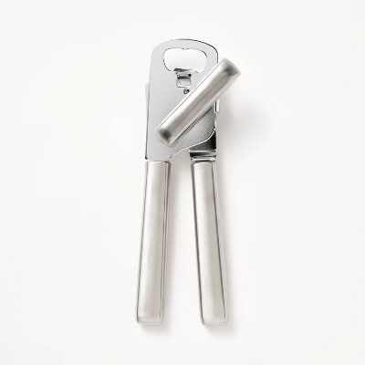 Open tins, cans and more with ease with the help of this Stainless Steel Manual Can Opener from Figmint. Made from stainless steel, this manual can opener features long handles for better grip and leverage and a turn knob that's easy to use. The dishwasher-safe construction makes it easy to clean, and as an added bonus, it also comes equipped with a handy bottle opener. Color: Silver