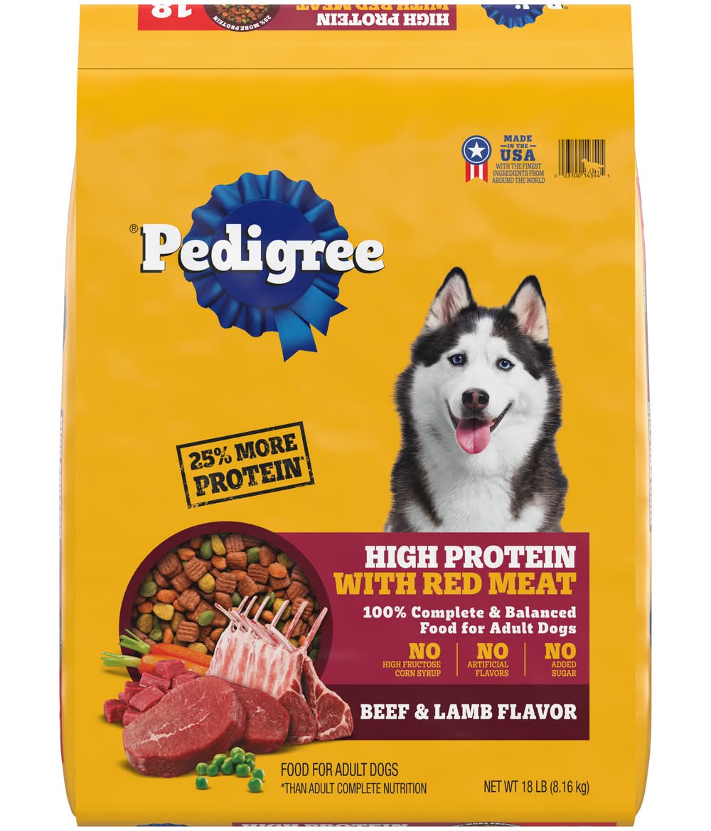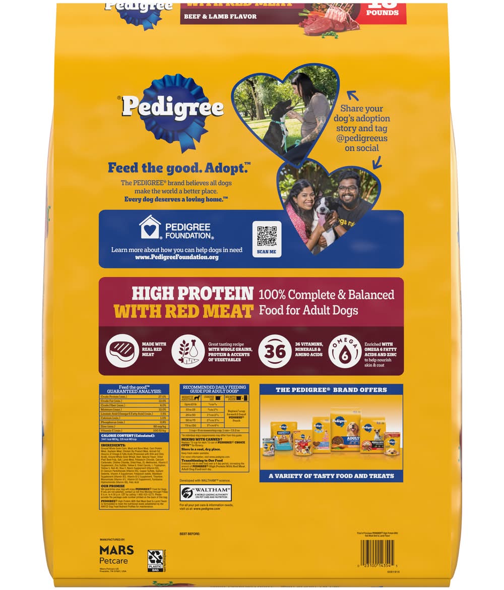 Pedigree High Protein With Red Meat Food For Dogs, Beef-Lamb, Adult (18 lbs)