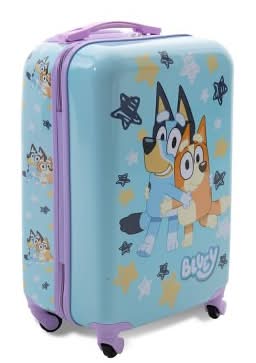 Your little one will love to go on adventure with this Bluey 18” Kid’s suitcase. This suitcase features expandable handle and spinner wheels for easy towing. A fully zipped compartment and an open compartment with compression straps and buckle for organizing. The ABS hard side construction offers protection for delicate items. This suitcase is perfect for travel, school trips and adventures. Color: Blue