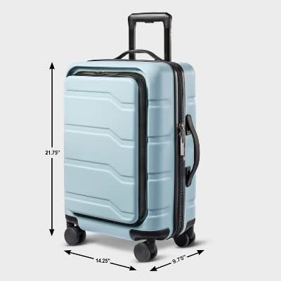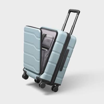 Hardside Carry On Spinner Suitcase with Front Pocket - Open Story™ Muddy Aqua: Water-Resistant Luggage with Telescoping Handle