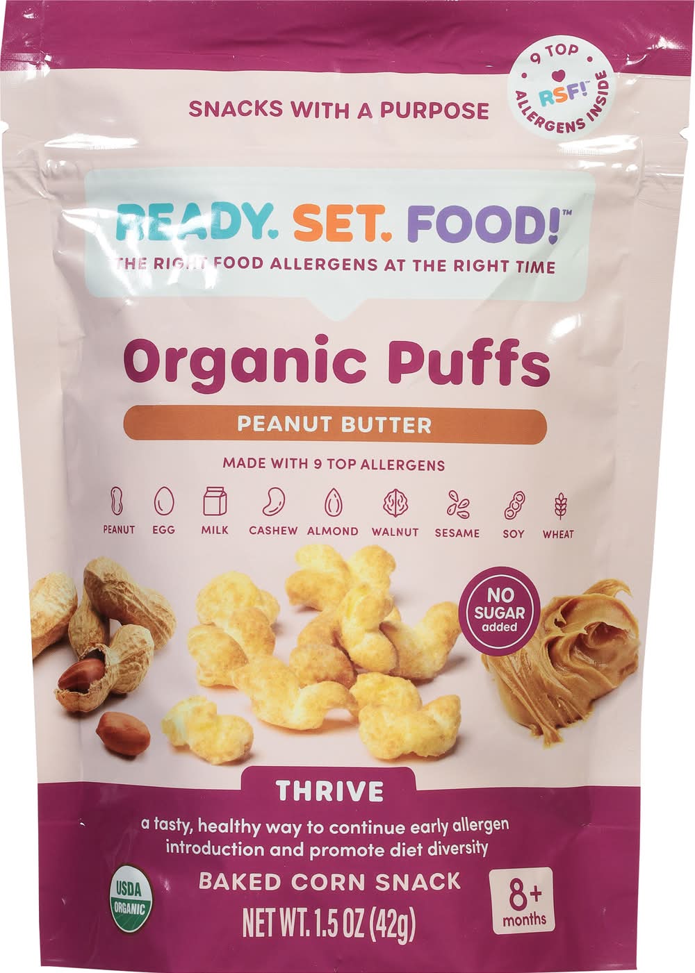 Ready, Set, Food! 8+ Months Baked Organic Puffs Baby Snack, Peanut Butter (1.5 oz)