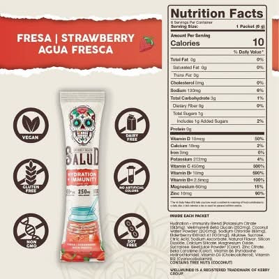 Taste Salud 2 In 1 Hydration and Immunity Electrolytes Powder Sticks, Fresa Strawberry (3.17 oz, 15 ct)