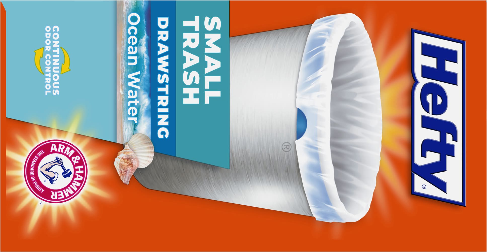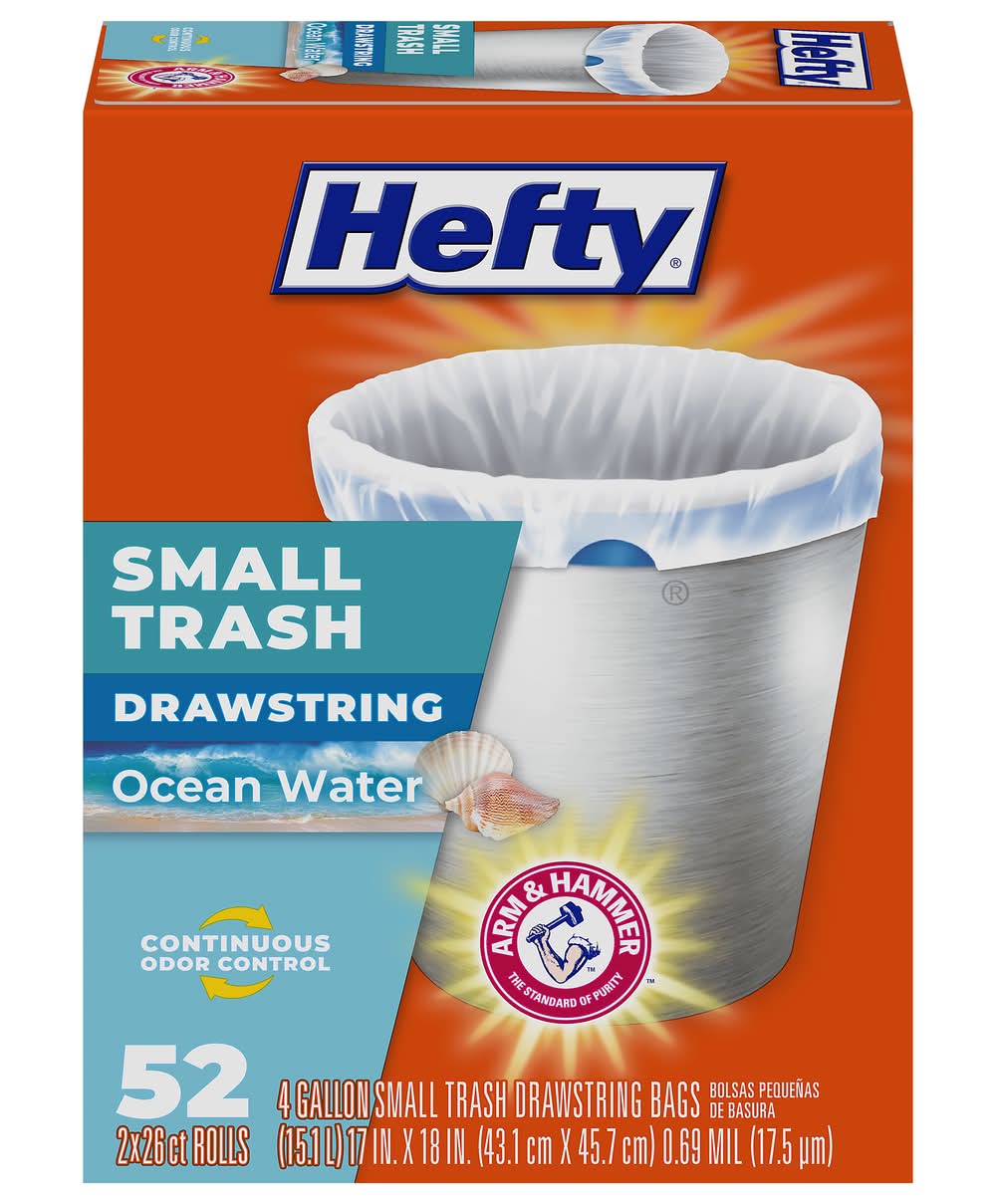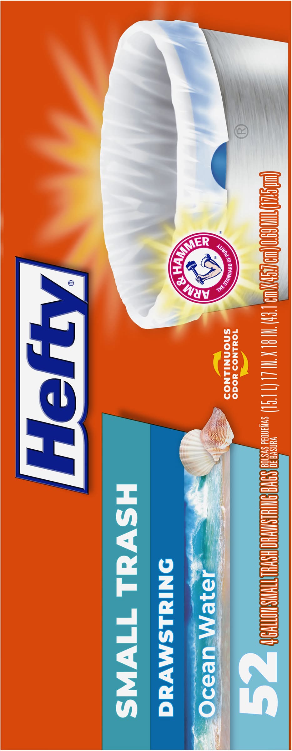 Hefty Small Trash Bags, Ocean Water Scent, 4 Gallon, 52 Count Packaging: Reusable