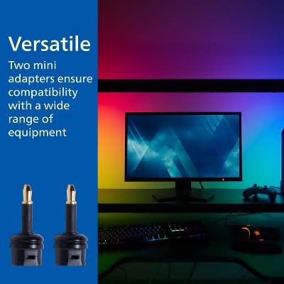 Give your home entertainment system a boost with a Philips 6ft. Elite Toslink® Fiber Optic Audio Cable with Mini Toslink Adapters. This professional-grade cable transmits superior high-definition surround sound between AV components with fiber optic inputs (TOSLINK). Rediscover your favorite movies, music and video games with fully rendered, crystal-clear surround sound from a superior audio signal. The high-grade optical fiber and lens allow you to experience the best possible performance – all without compromising sound quality. The 6ft. cable is protected by a durable PVC jacket and easily connects two AV components with fiber optic Toslink audio inputs. The cable’s molded ends have flex relief for a more rugged, durable cable that won’t easily break. No matter your entertainment setup, this cable works with all brands of Blu-ray™ and DVD players, DVRs, sound bars, AV receivers, cable and satellite boxes and more. Make an exceptionally sound decision with the Philips 6ft. Elite Toslink Fiber Optic Audio Cable with Mini Toslink Adapters. Model #SWA9326A/27 • Color: Gray • Size: 6 In