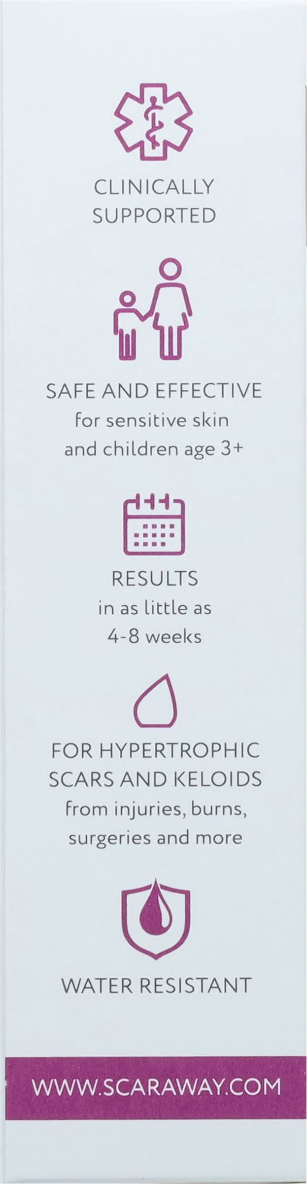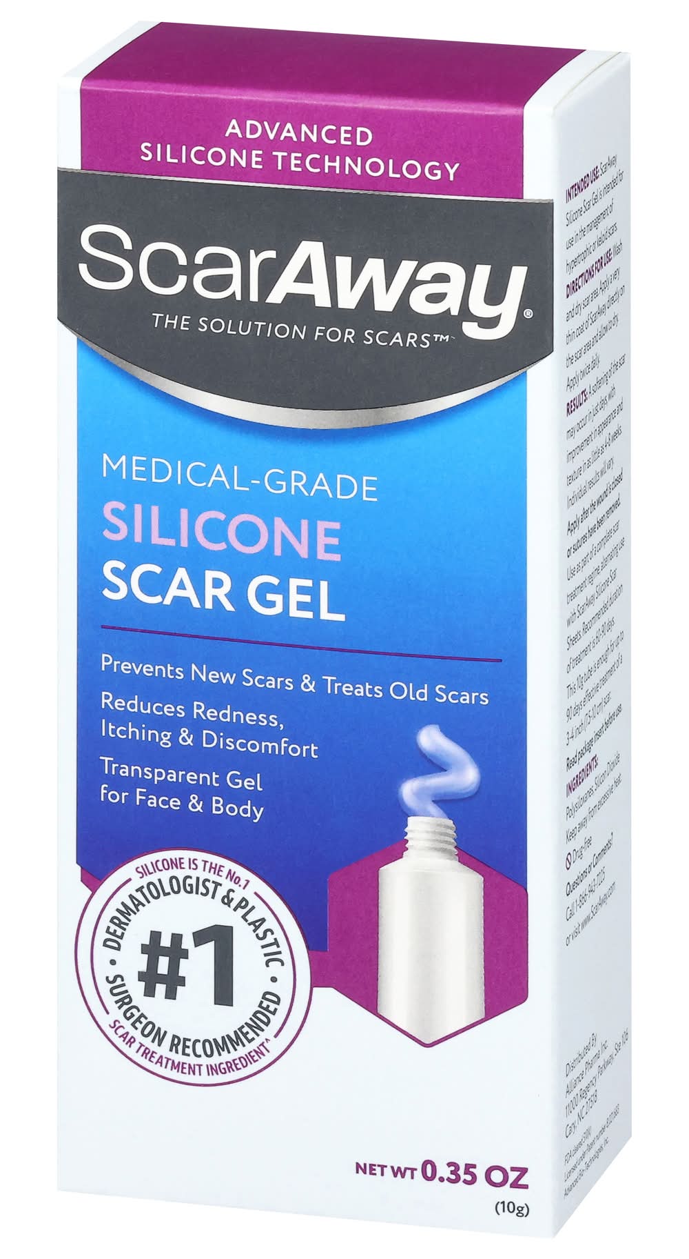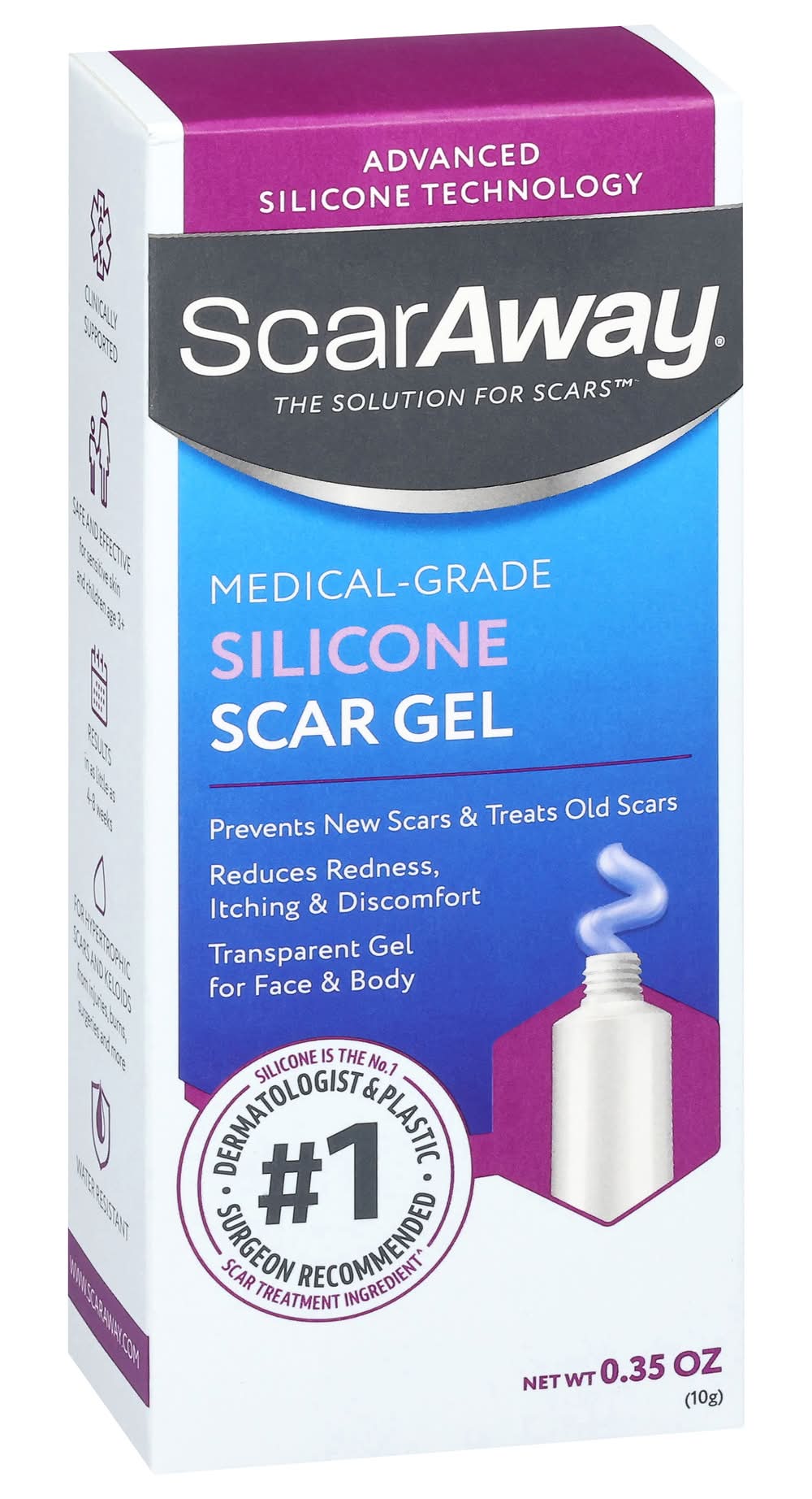 ScarAway 100 Percent Medical-Grade Silicone Scar Gel is an effective solution for those seeking to fade and treat scars. Whether you've undergone surgery, had a cosmetic procedure, mole removal, injury or burn, this scar treatment can help fade the appearance of hypertrophic and keloid scars. The gel is suitable for use on any body part, even hard-to-treat areas like the face, scalp and joints. ScarAway's patented, transparent, self-drying silicone gel technology is effective for both newly healed wounds and old scars. Its silicone formula is clinically supported to make scars closer to the natural texture and color of the skin. This scar treatment is suitable for use on kids or people with sensitive skin, and is effective 24 hours a day with twice-daily use. ScarAway's scar reducing treatments provide a practical and effective solution to help people feel more confident in their skin.