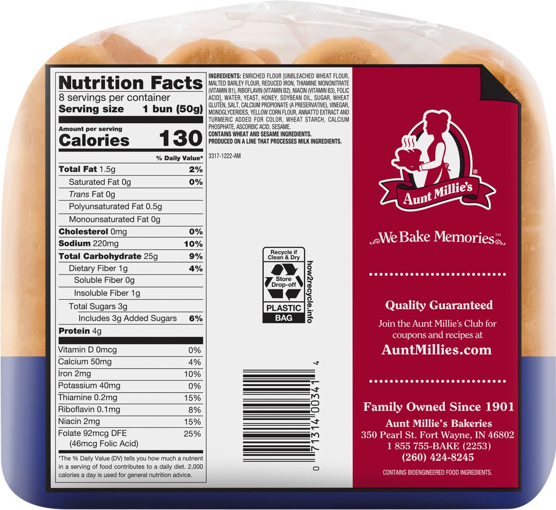 Aunt Millie's Stadium Honey Hot Dog Buns (13 oz)