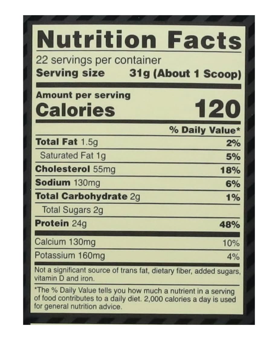 Ingredients: Protein Blend (Whey Protein Isolate, Whey Protein Concentrate, Hydrolyzed Whey Protein), Natural and Artificial Flavor, Sunflower and/or Soy Lecithin, Salt, Acesulfame Potassium, Sucralose Contains: Milk, Soybeans
