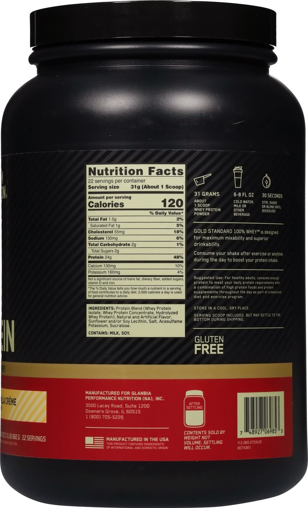 Optimum Nutrition Gold Standard 100% Whey Protein Powder, French Vanilla Creme (1.55 lbs)