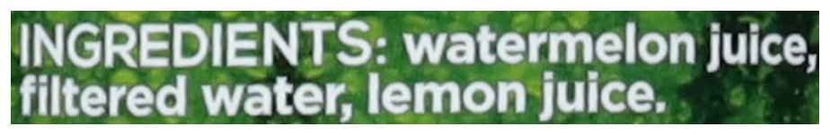 Ingredients: Watermelon Juice, Filtered Water, Lemon Juice Contains: 'Free From Gluten'